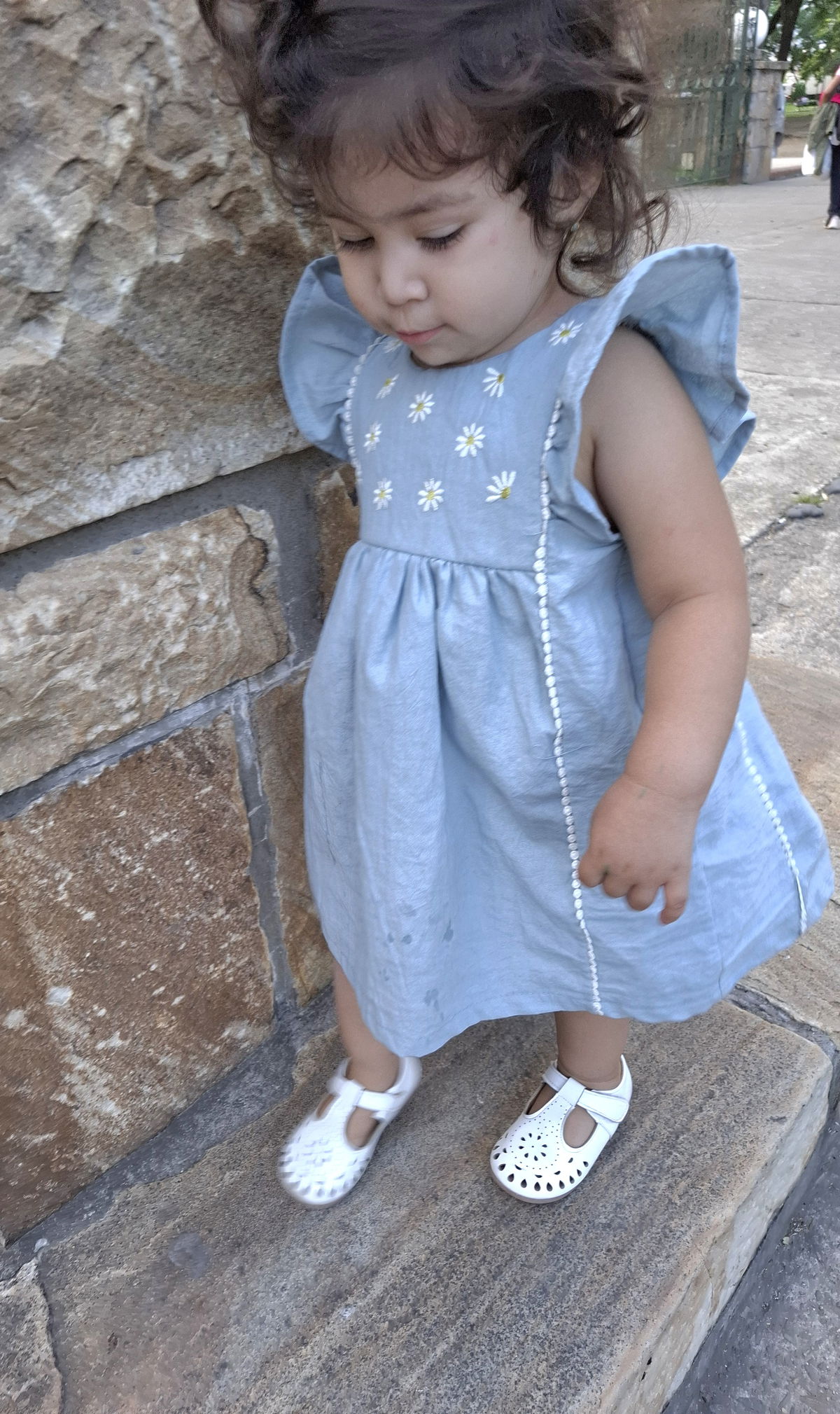 Confeccionado en nuestra molderias con un bordado hermoso en toda la pechera de margaritas
