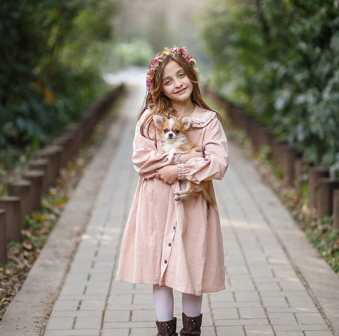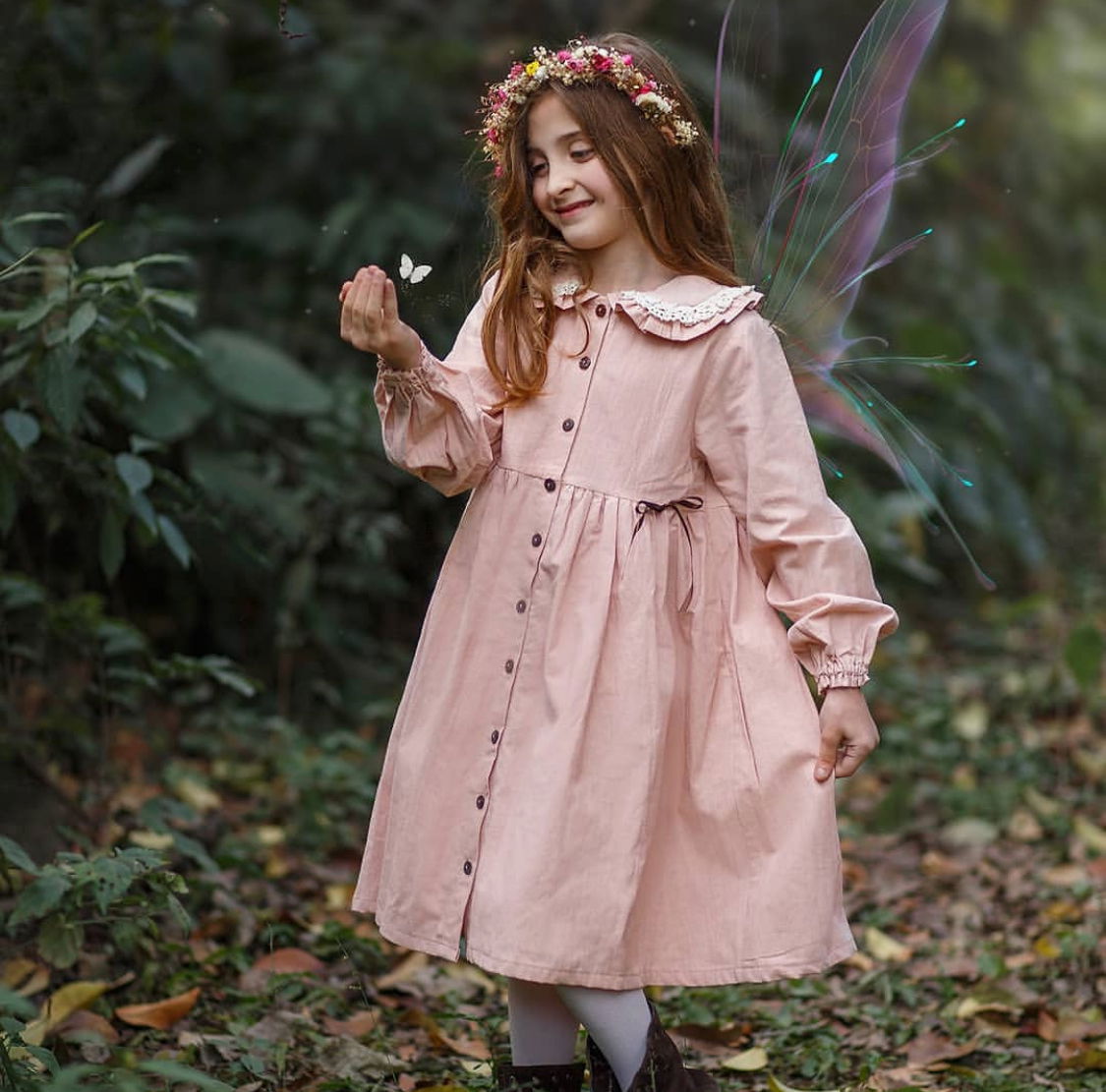 Vestido Magnolia rosa mangas largas