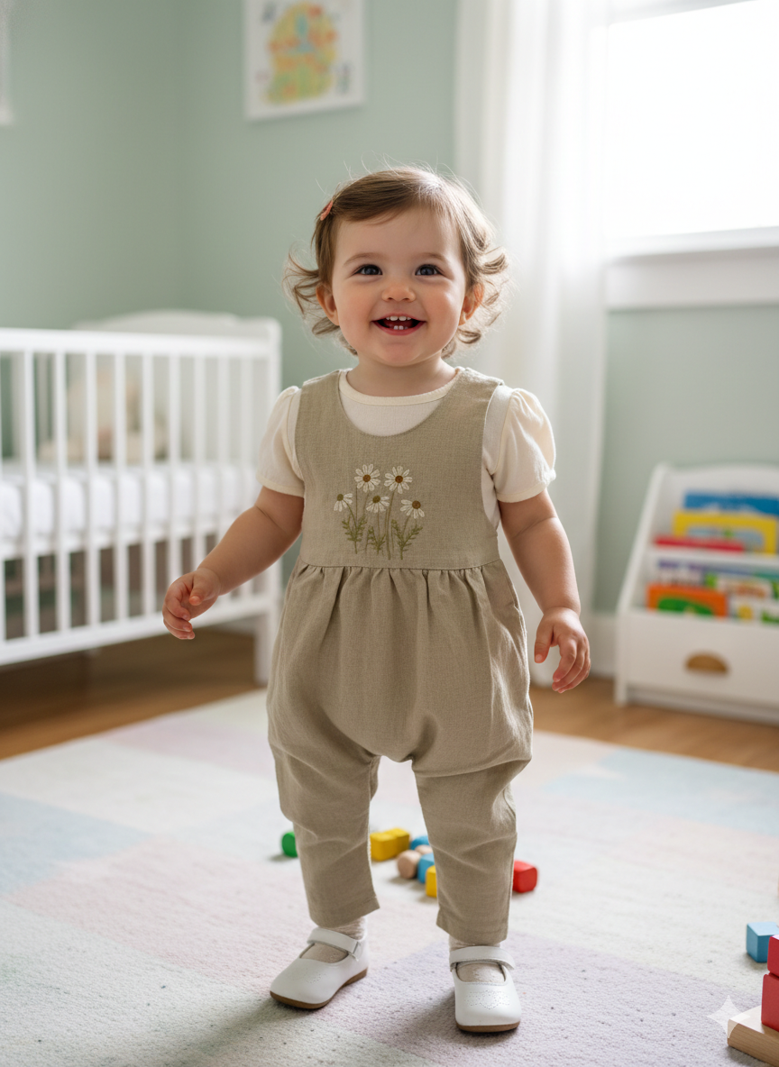 El bordado nos encanta como luce y es protagonista en la ropa de bebé por eso esta vez te lo traemos en este adorable jardinero .