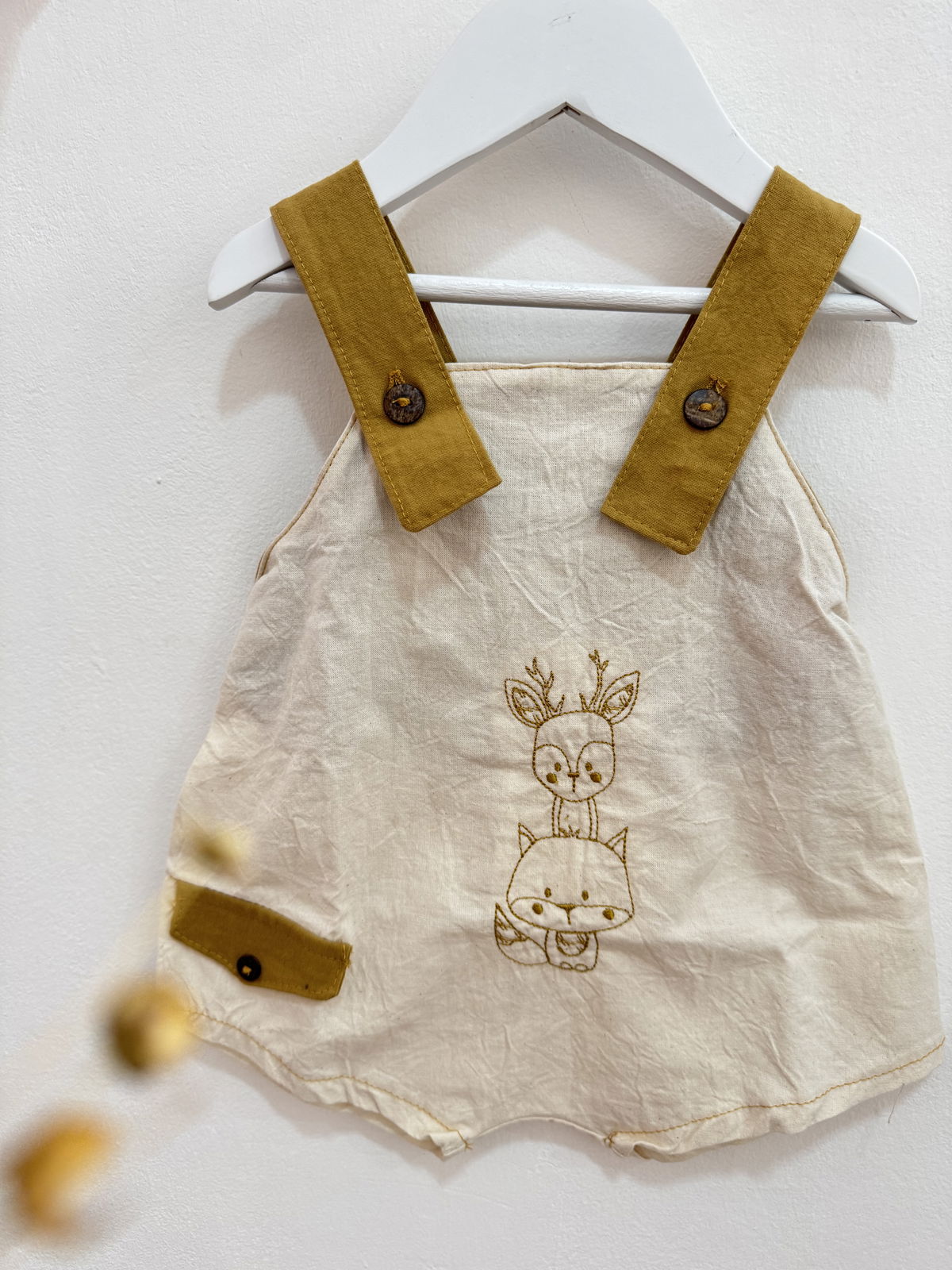El bordado nos encanta como luce y es protagonista en la ropa de bebé por eso esta vez te lo traemos en este adorable jardinero .