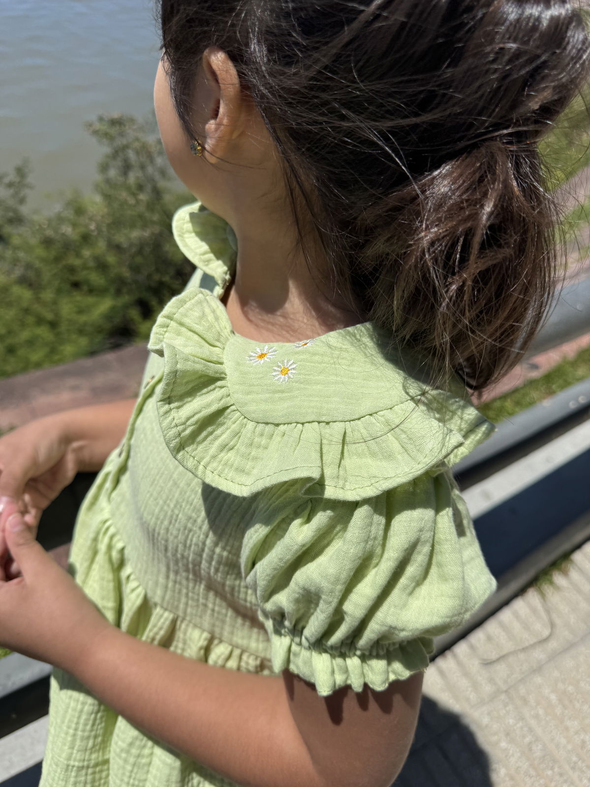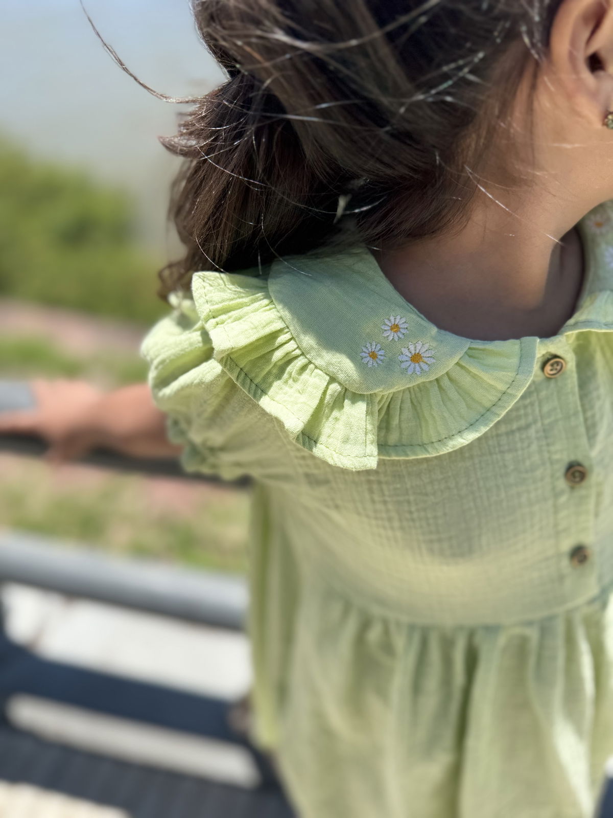 Confeccionado en baby cotton , con un cuello delicadisimos bordando unas triple margaritas , es todo lo que lo hace único !