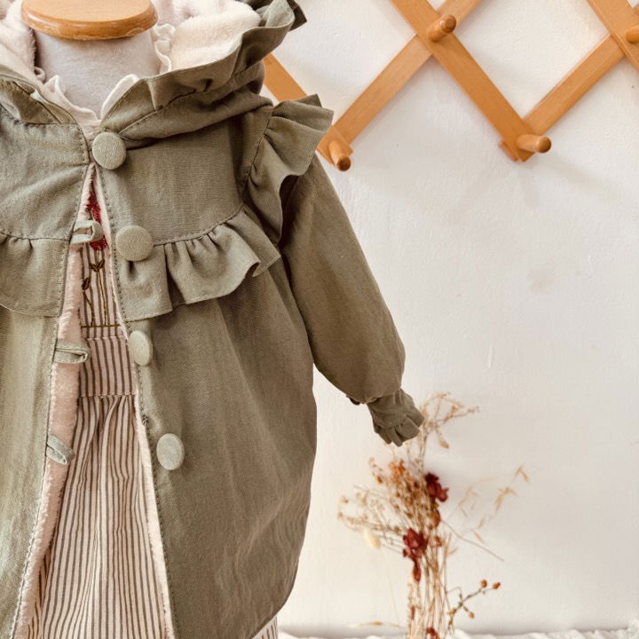 La prenda mas abrigadita de Mielita en este invierno , confeccionada en Tusor pesado una tela gruesita y calentita forrada completamente por dentro de piel cita suavecita color manteca.