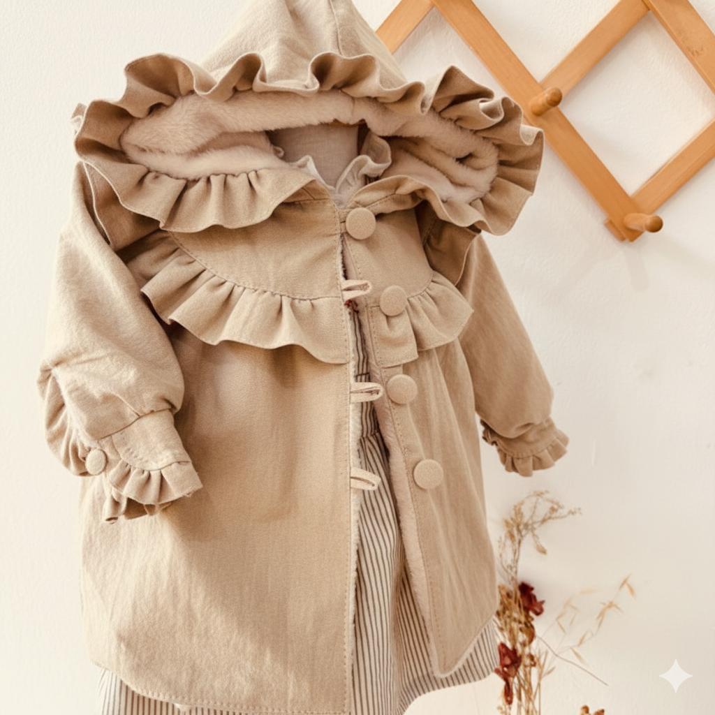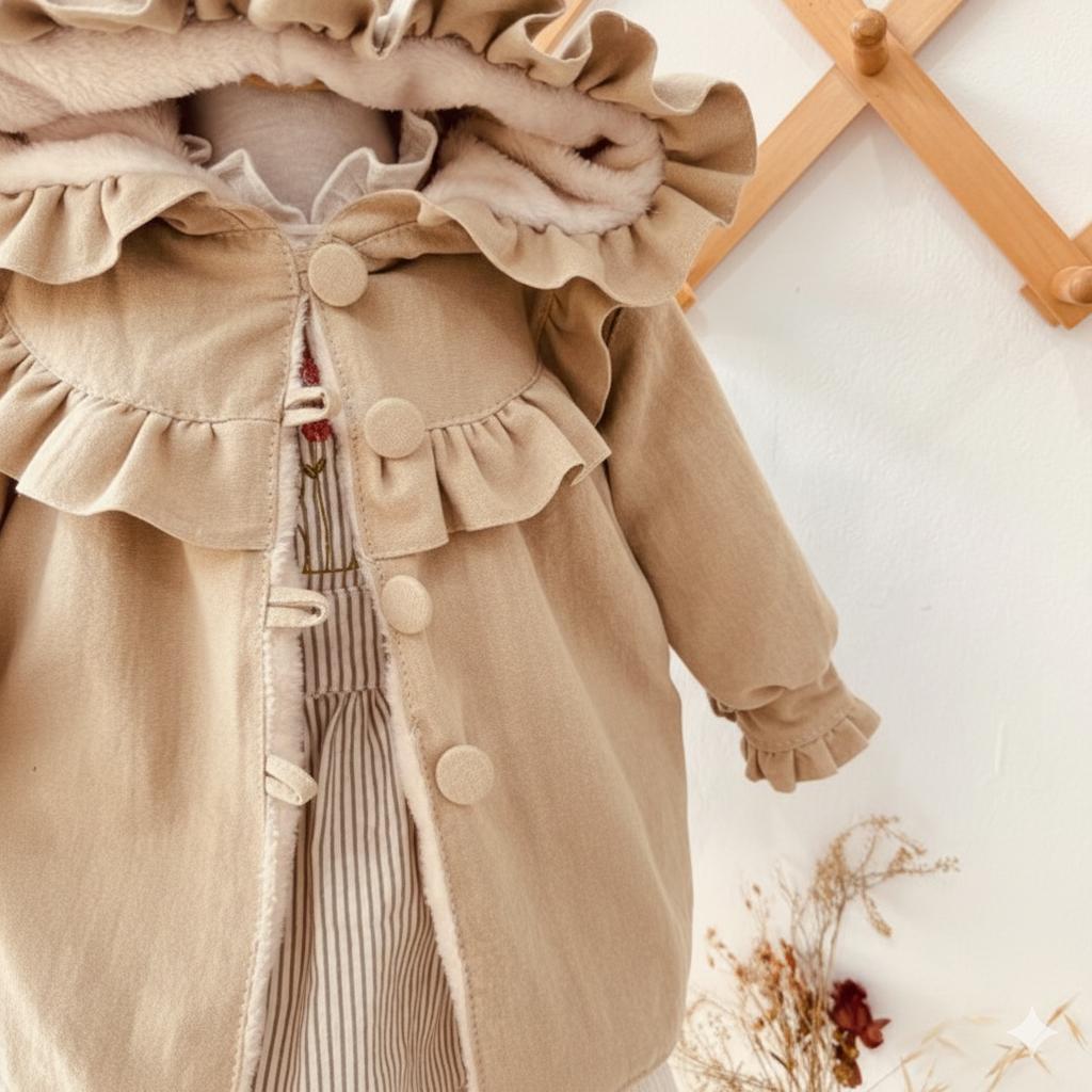 La prenda mas abrigadita de Mielita en este invierno , confeccionada en Tusor pesado una tela gruesita y calentita forrada completamente por dentro de piel cita suavecita color manteca.