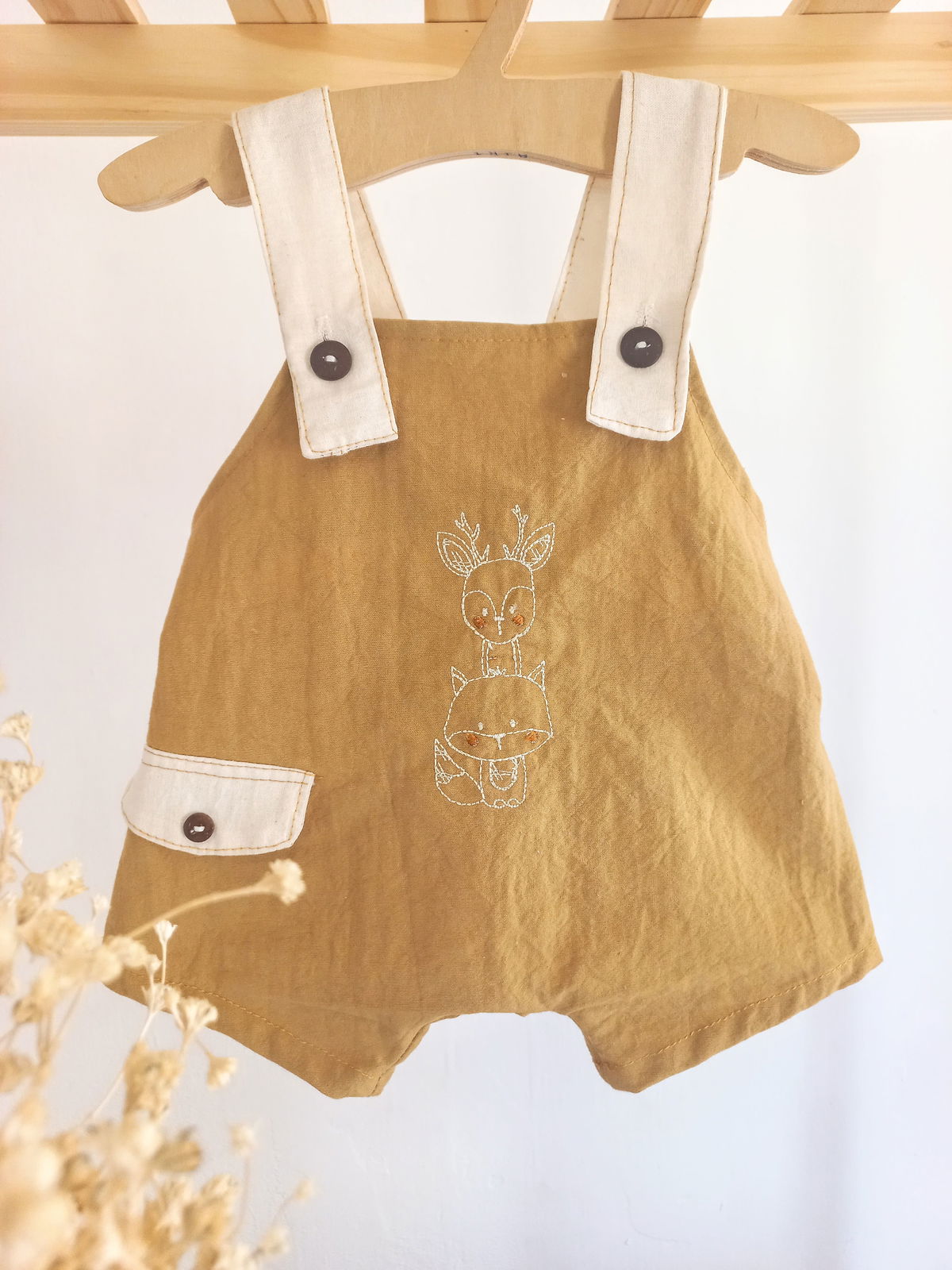 El bordado nos encanta como luce y es protagonista en la ropa de bebé por eso esta vez te lo traemos en este adorable jardinero .