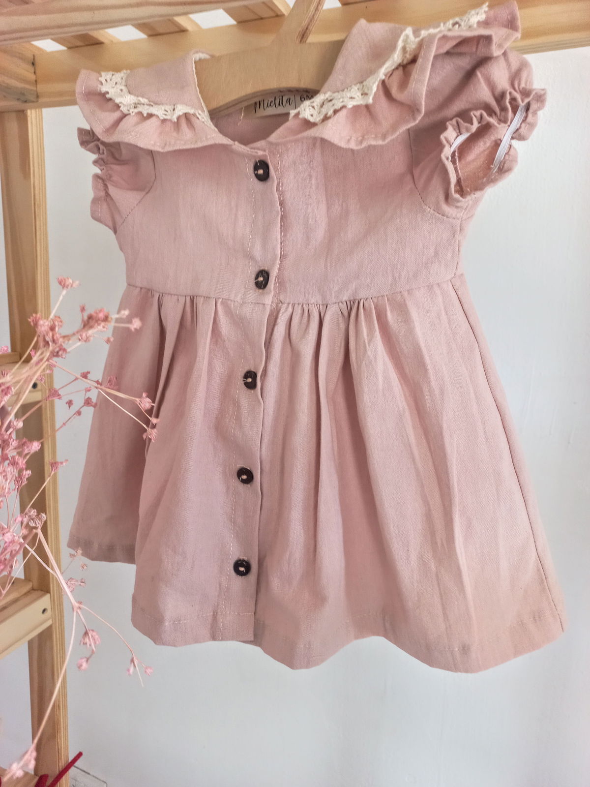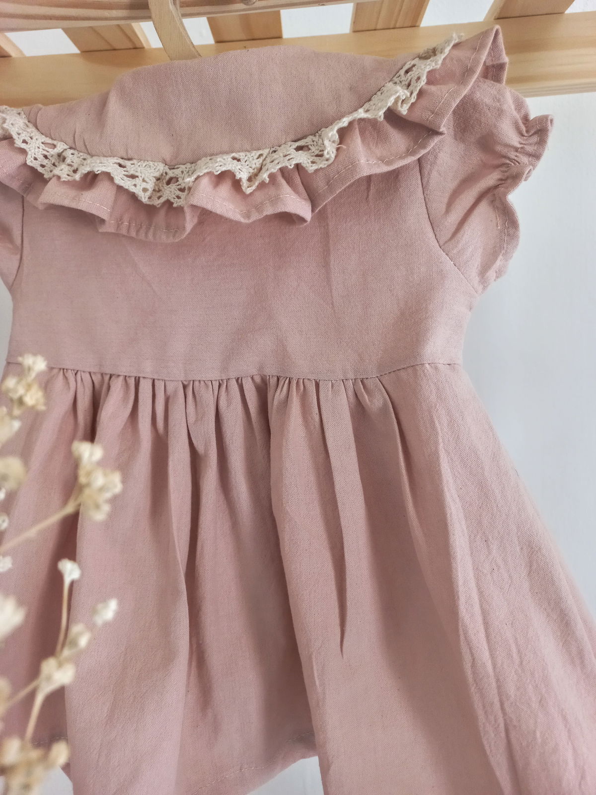 Detalle de este delicado Vestido es el cuello con Puntilla