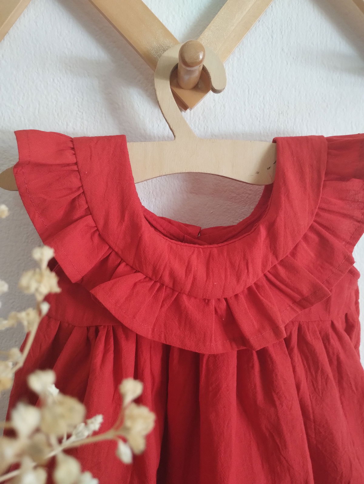 Detalle de este delicado Vestido es el cuello con voladitos y un corte en punta , escote redonde podés lucirselo tanto de atrás como adelante ...y una falda muuuuy amplia