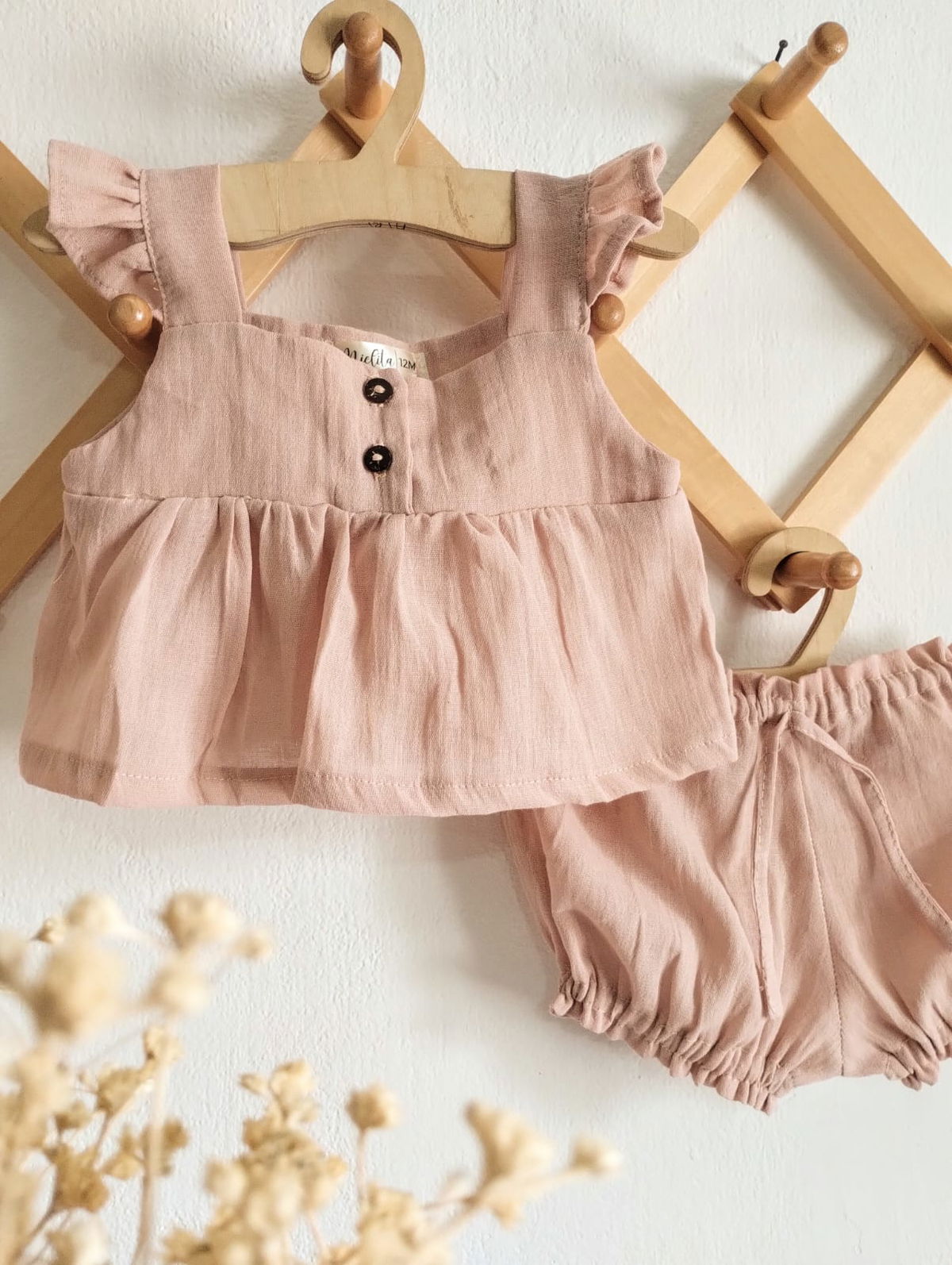 detalles de voladito en los breteles y un moño en el bombachoncito .