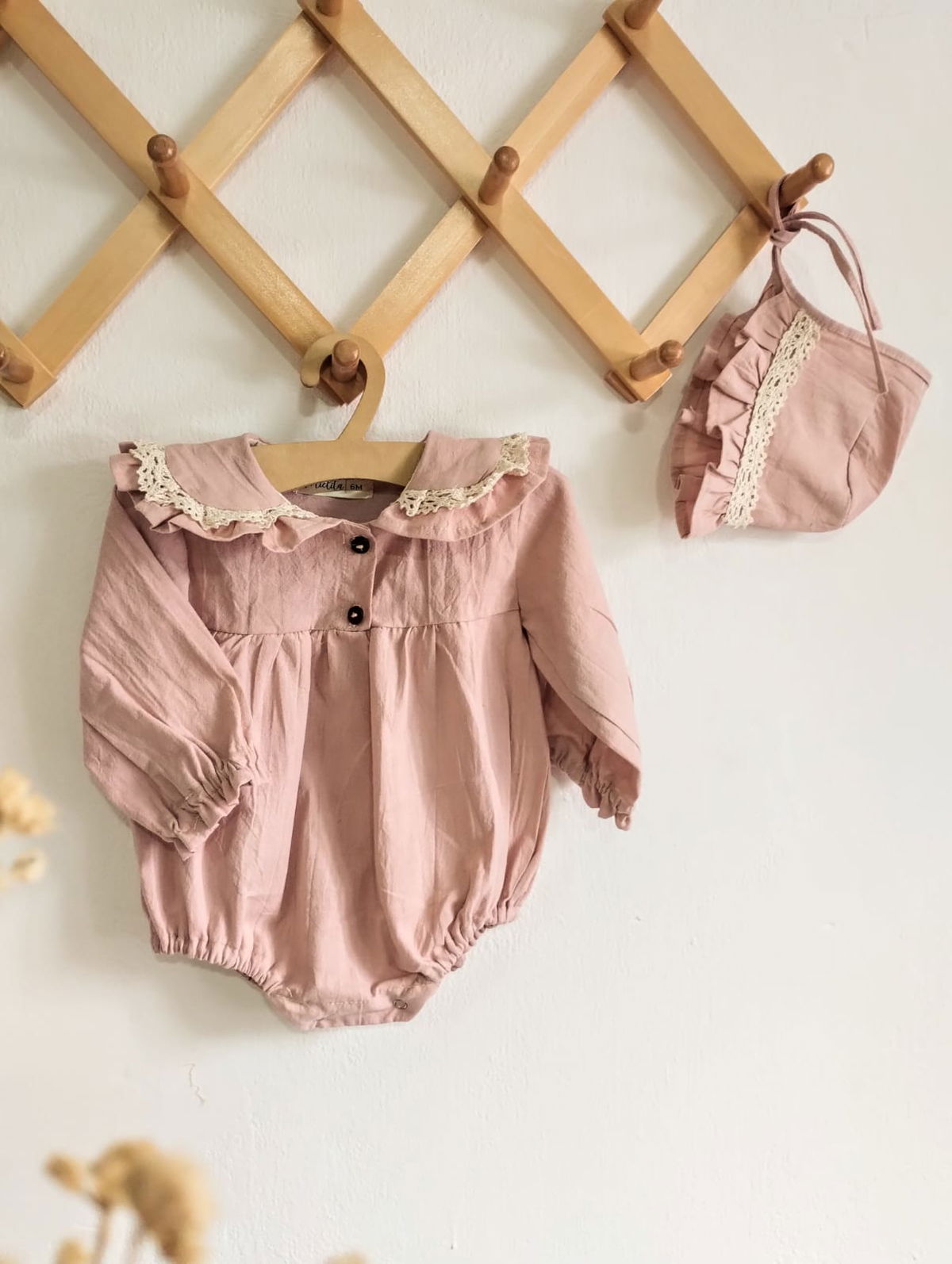 confeccionado en algodon con un detalle delicado en puntilla sobre los voladitos del cuello , sin lugar a duda sigue siendo el elegido de todas las mamis .