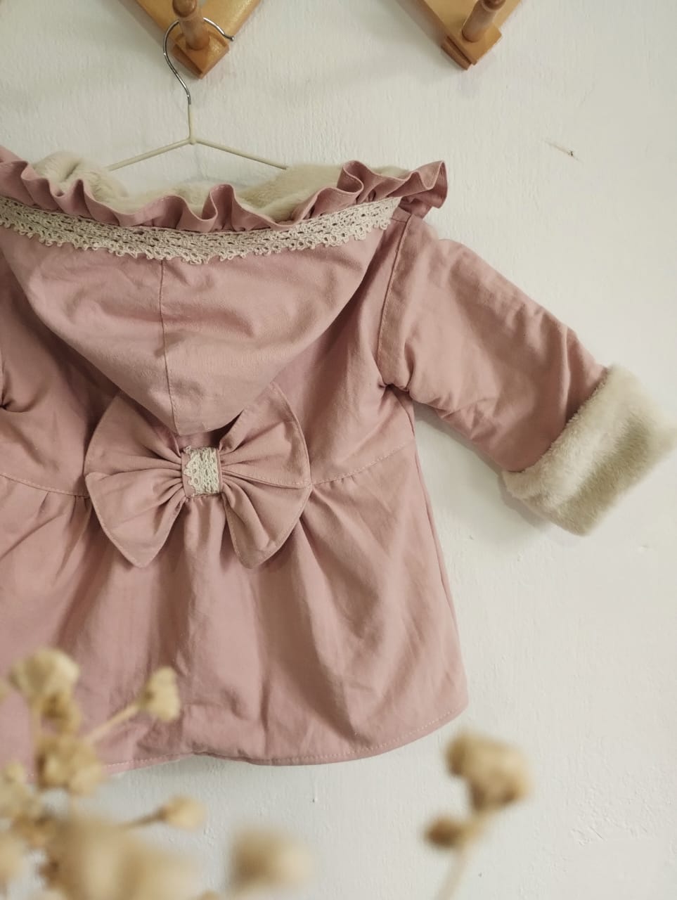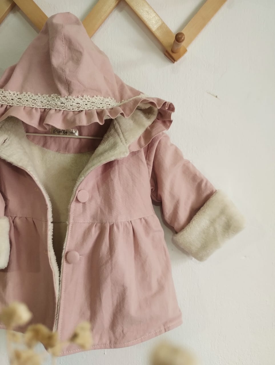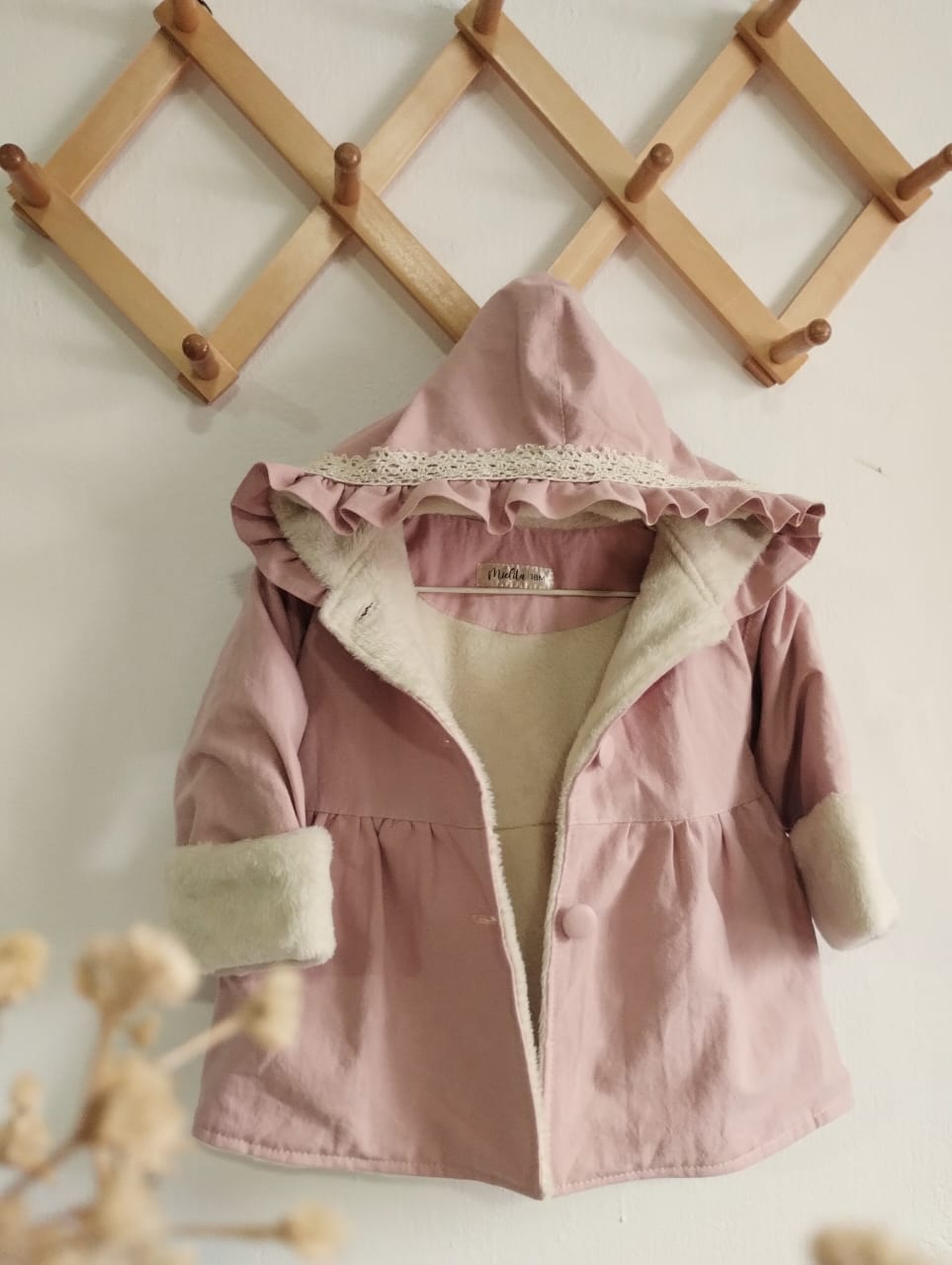 La prenda mas abrigadita de Mielita en este invierno , confeccionada en tusor una tela gruesita , forrada completamente por dentro de pielcita suavecita color manteca.