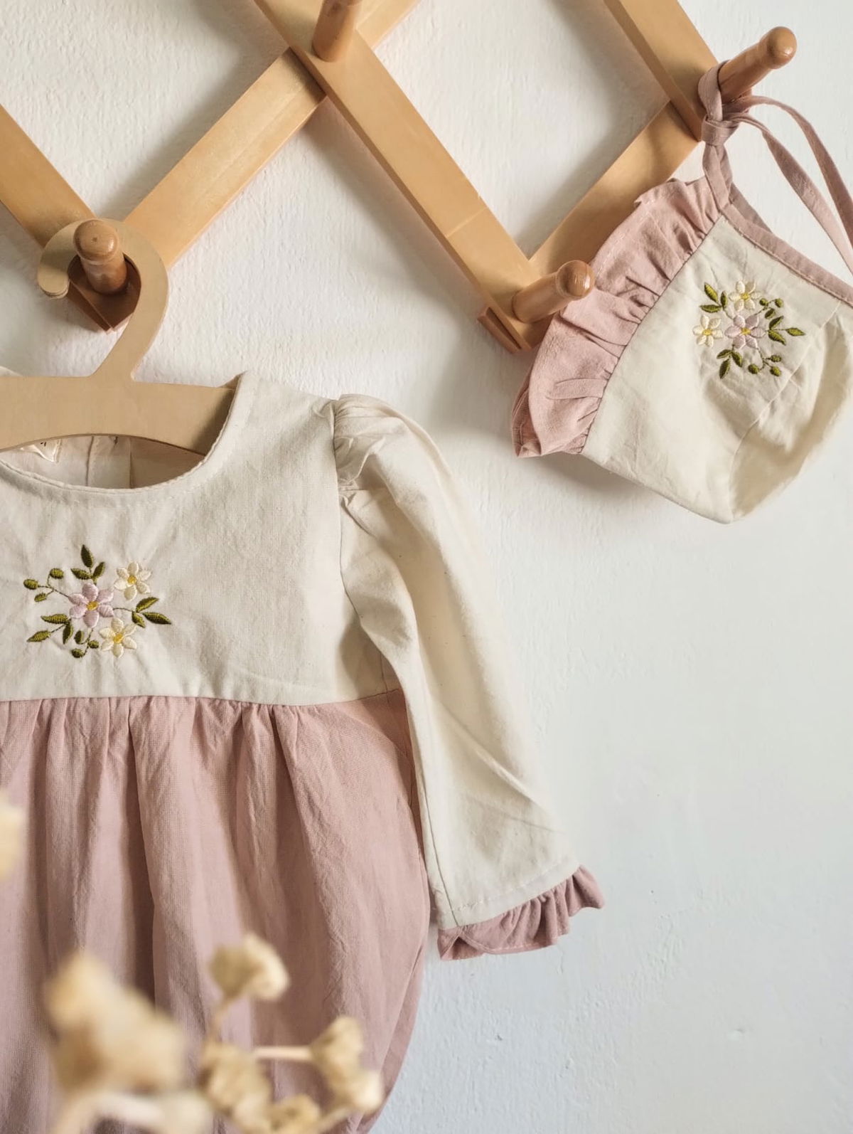 Un regalito ideal y delicadito para esa princesa que se lo merece todo, ambas piezas llevan un bordado hermoso haciendo juego entre si , no podemos con lo bello que es este set.