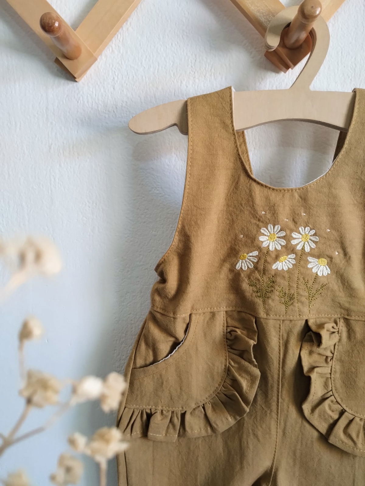 El bordado nos encanta como luce y es protagonista en la ropa de bebé por eso esta vez te lo traemos en este adorable jardinero .