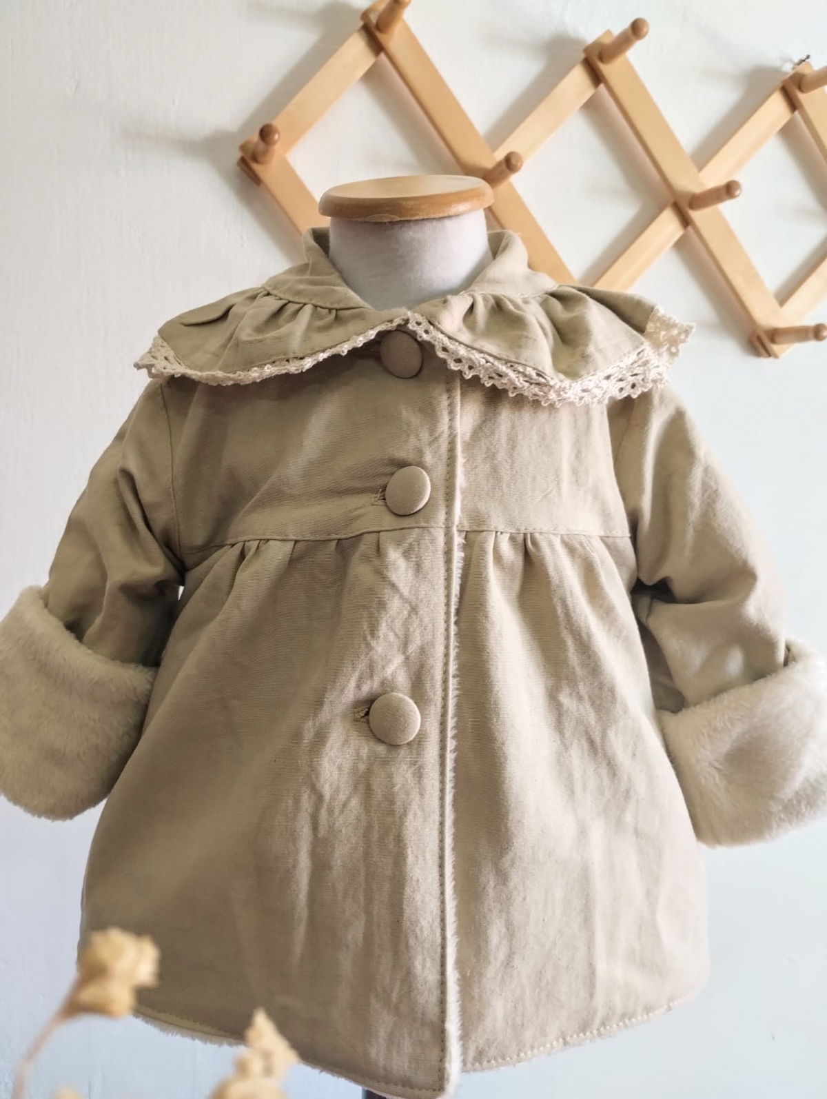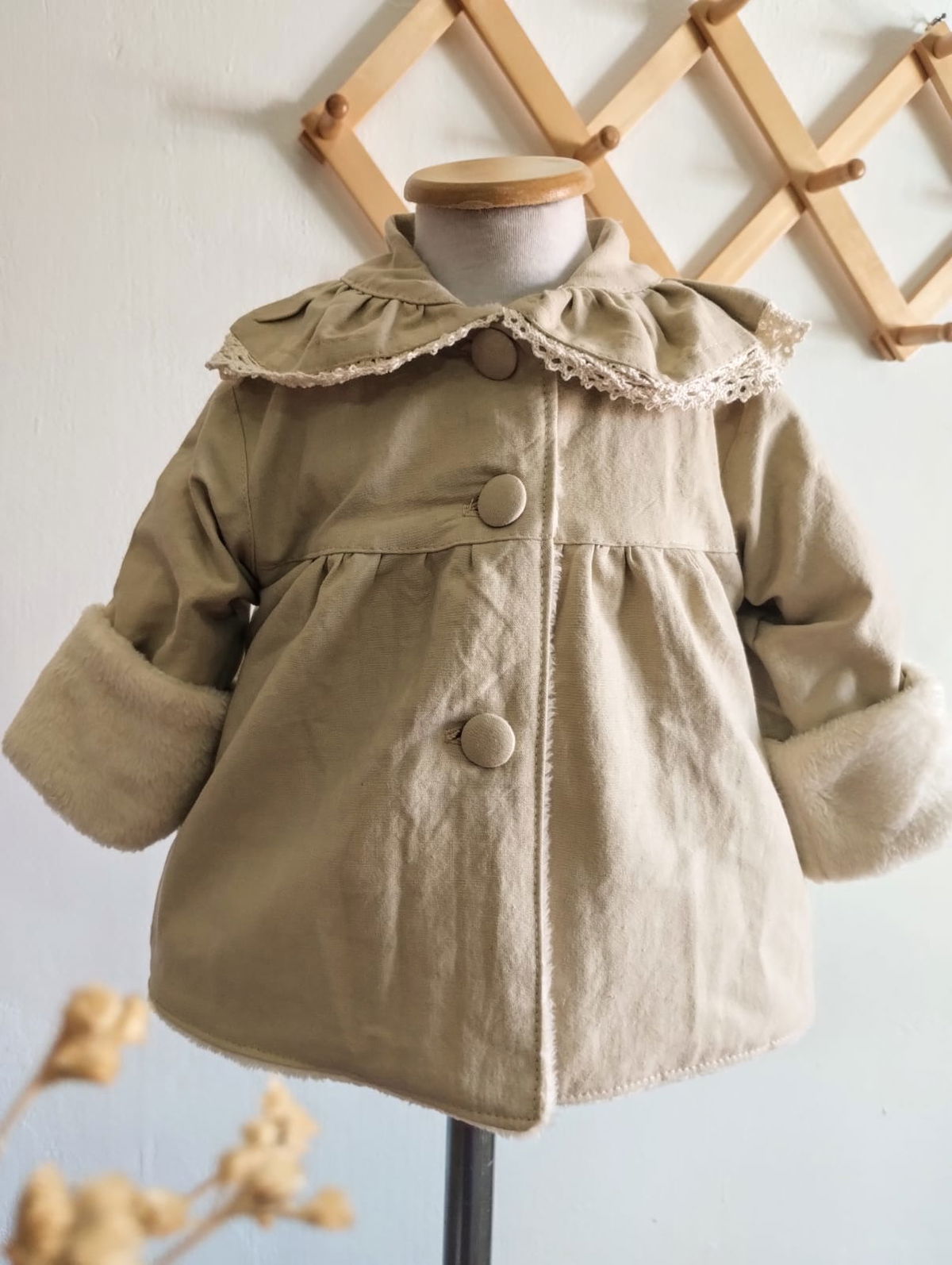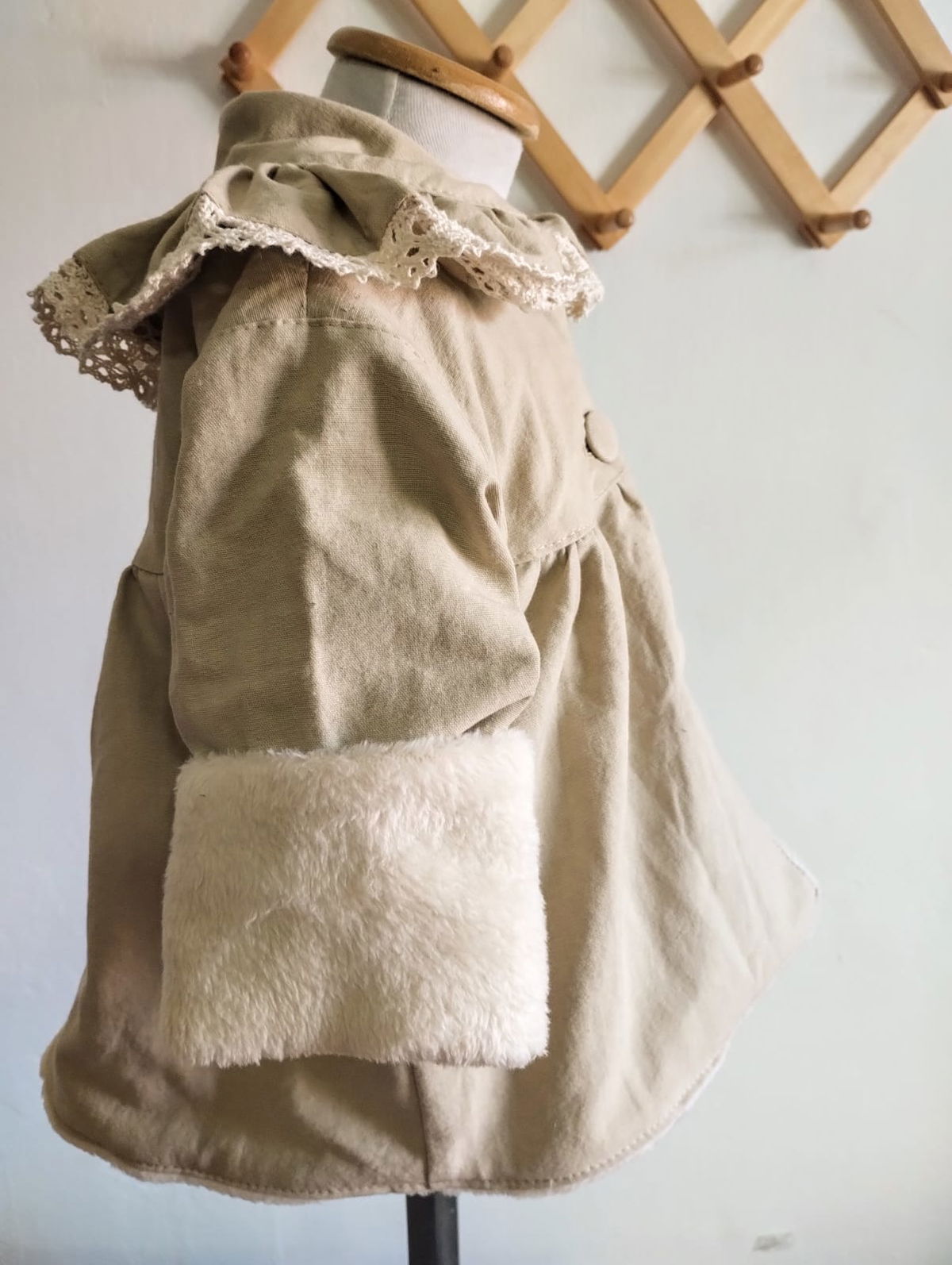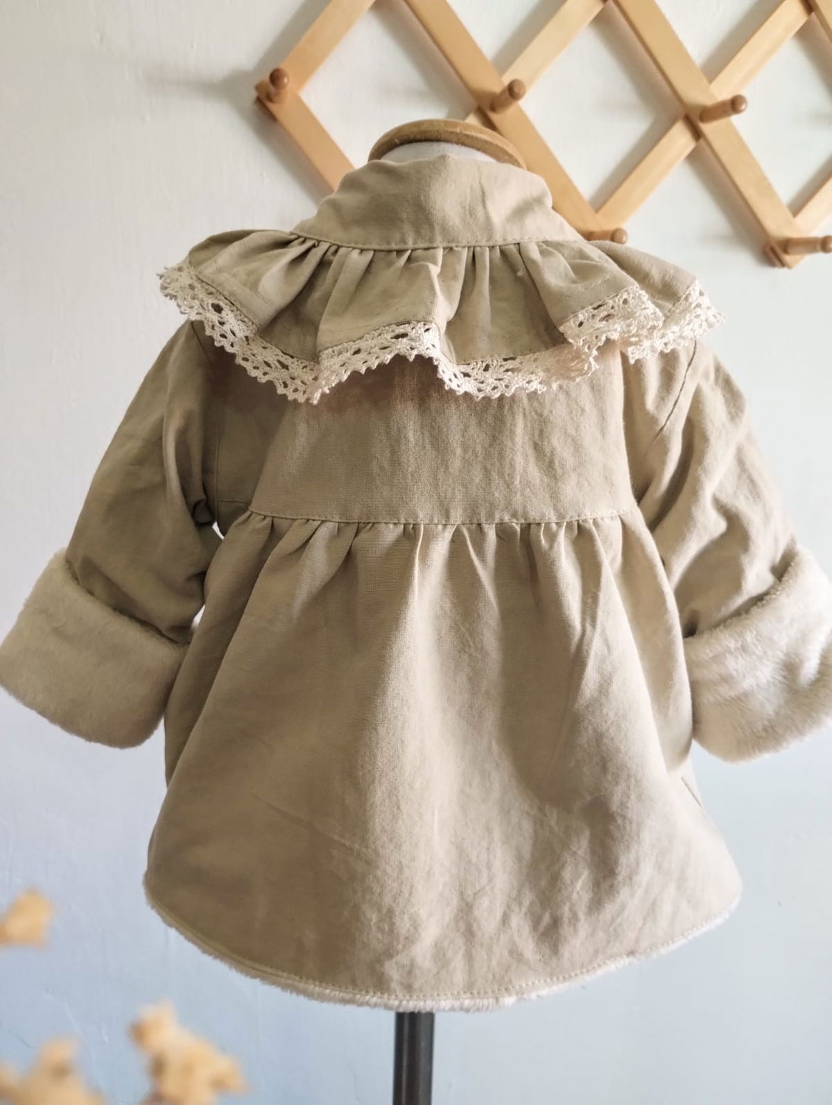 La prenda mas abrigadita de Mielita en este invierno , confeccionada en tusor una tela gruesita , forrada completamente por dentro de pielcita suavecita color manteca.