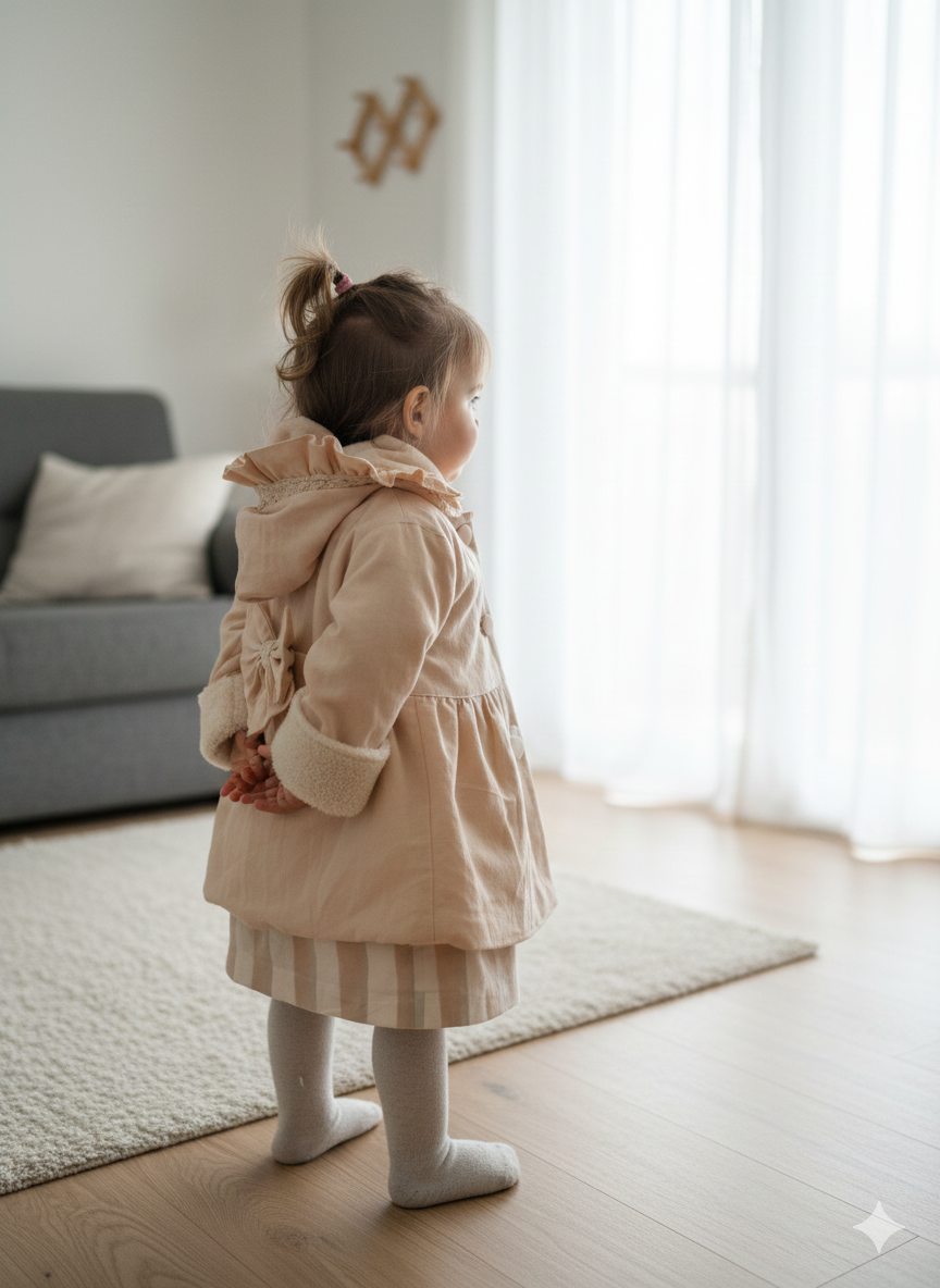 La prenda mas abrigadita de Mielita en este invierno , confeccionada en tusor una tela gruesita , forrada completamente por dentro de pielcita suavecita color manteca.