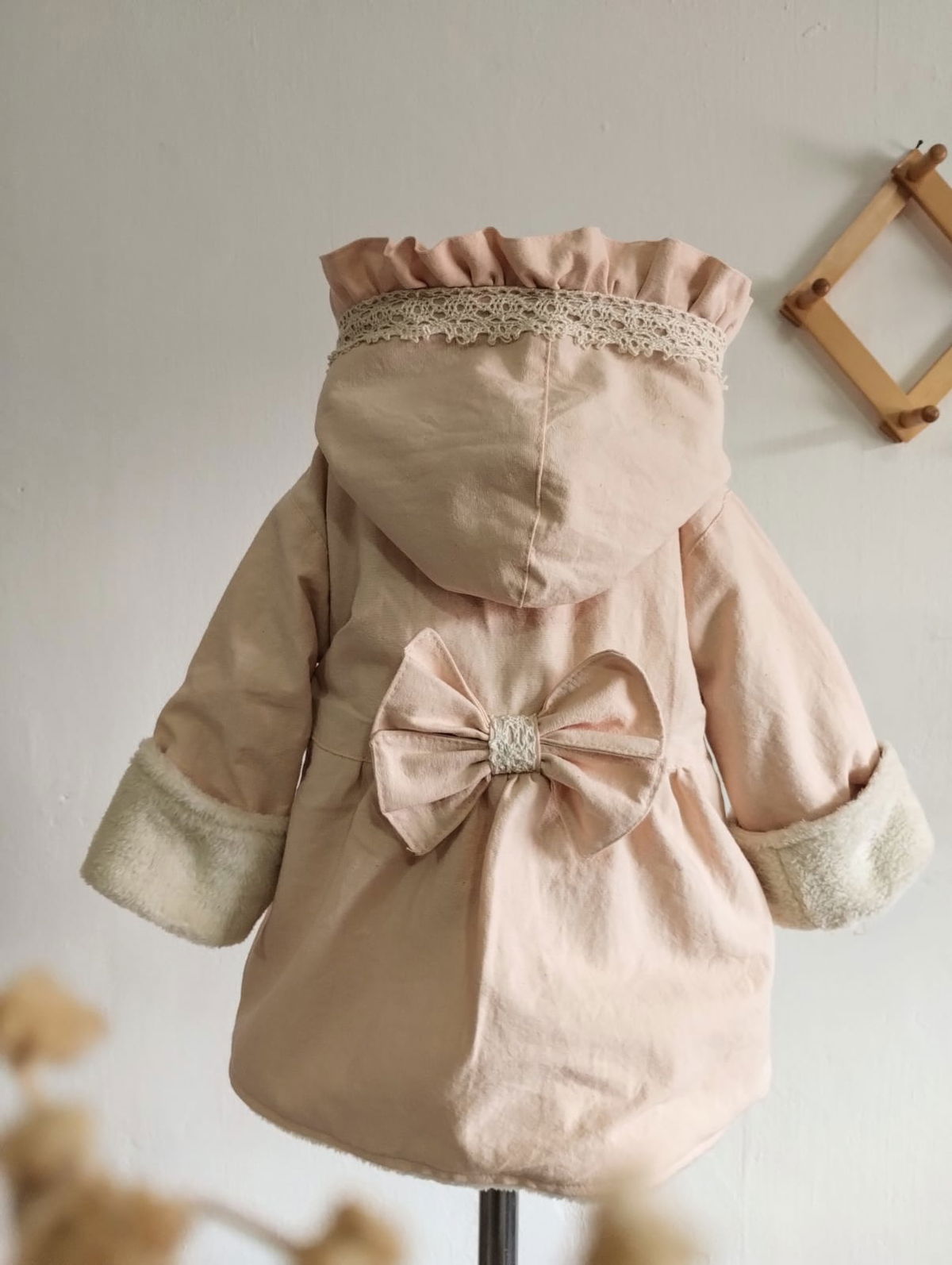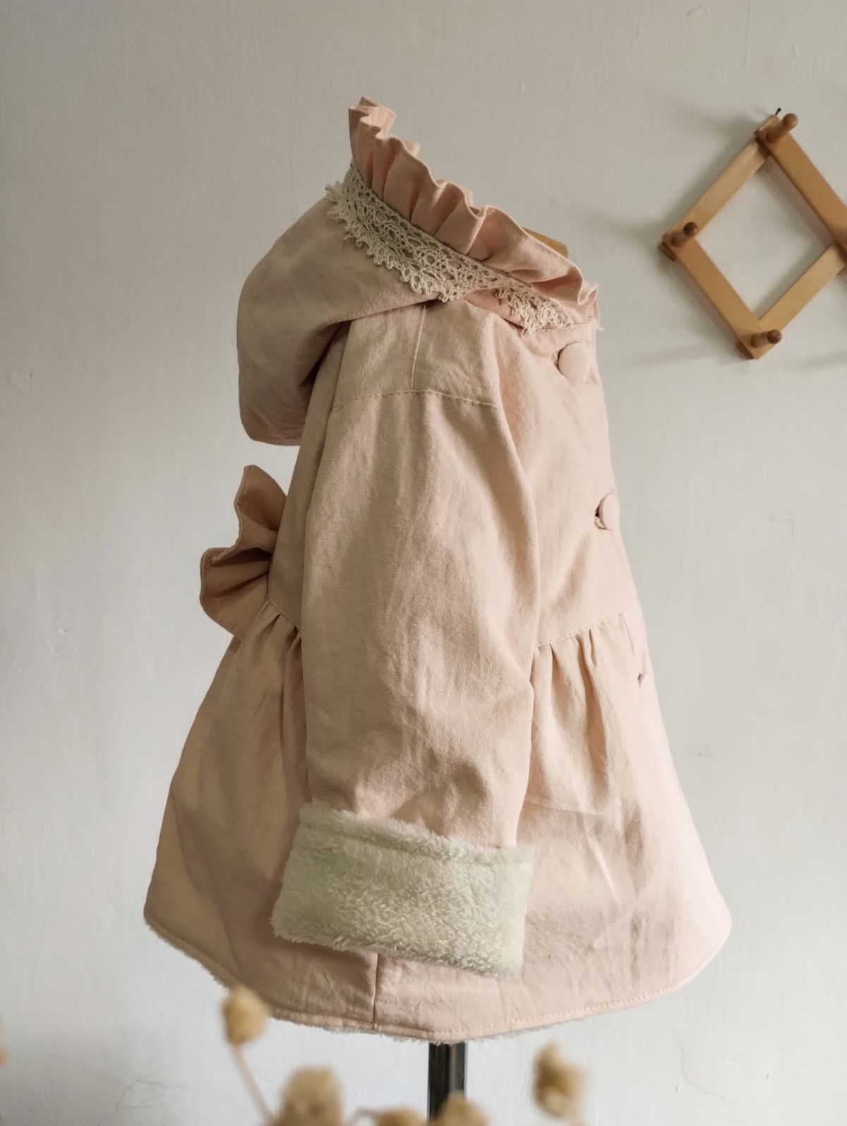 La prenda mas abrigadita de Mielita en este invierno , confeccionada en tusor una tela gruesita , forrada completamente por dentro de pielcita suavecita color manteca.