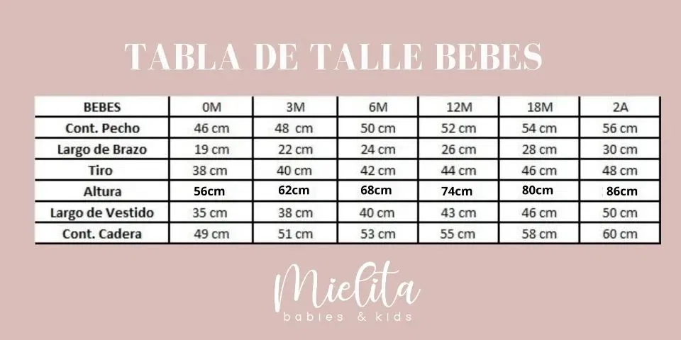 Tabla de talle Para elejir correctamente el yalle de tu pequeña