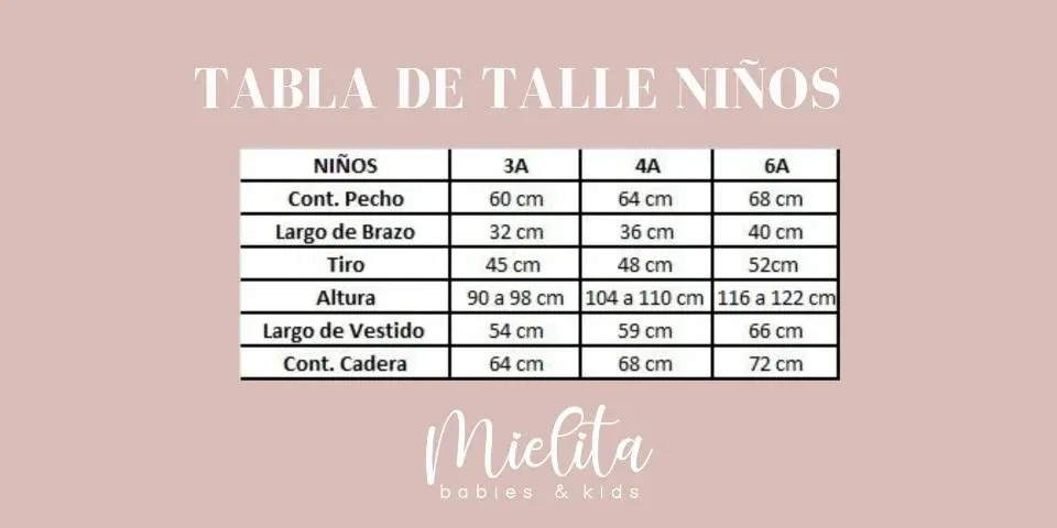 Tabla de talle Para elejir correctamente el talle de tu pequeña