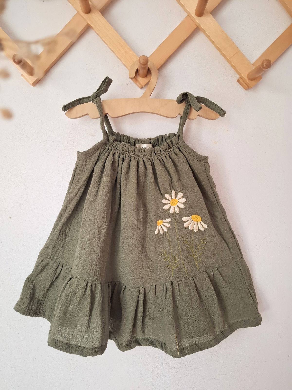 Este vestido acompaña a tu nena un largo tiempo ya que es regulable por sus tirantes y elastico en la pechera .