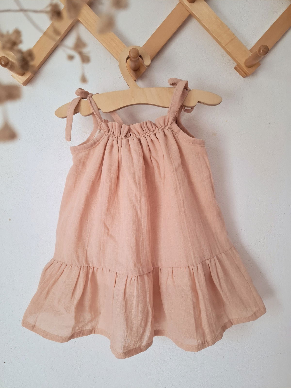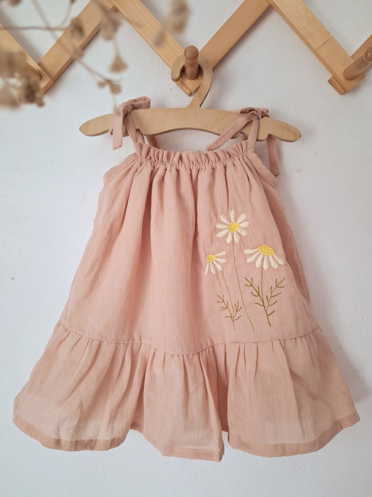 Este vestido acompaña a tu nena un largo tiempo ya que es regulable por sus tirantes y elastico en la pechera .