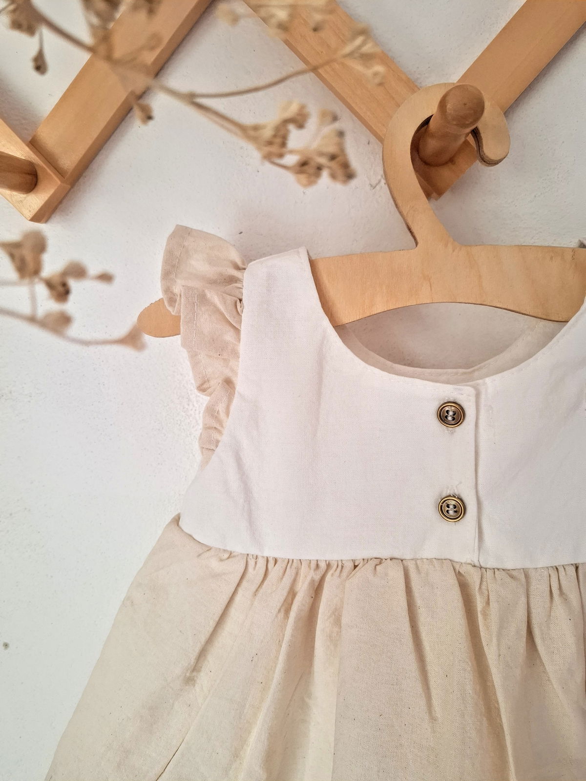 el mismo esta combinado en crema y forrado en la pechera para que las terminaciones del mismo sean delicadas e impecables