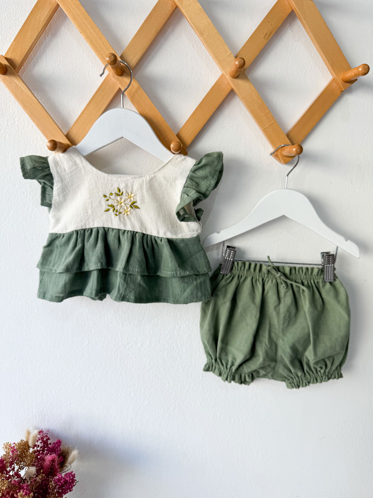 Conjunto Esperanza combinado Verde Seco Bordado + Capelina Bordada