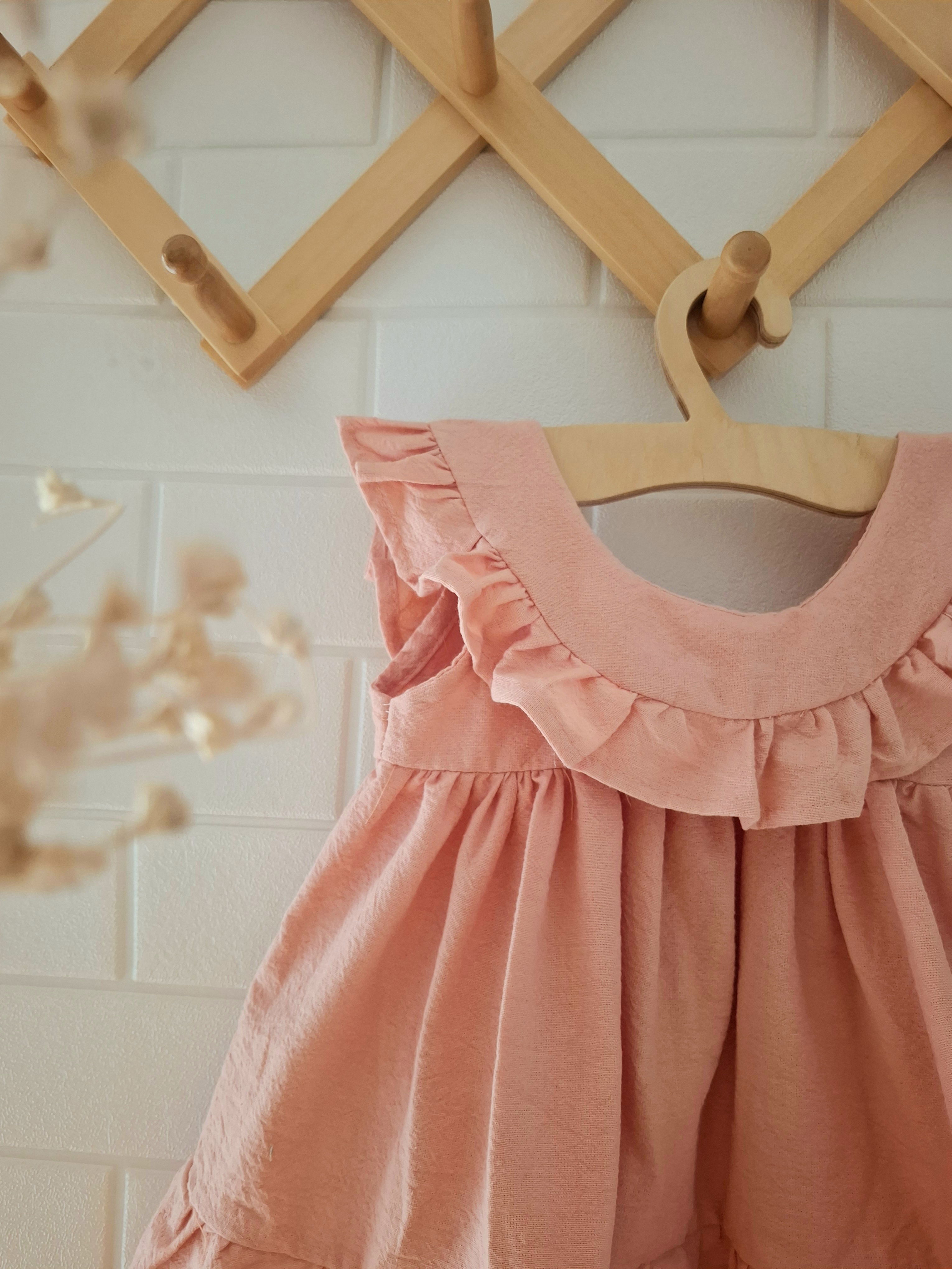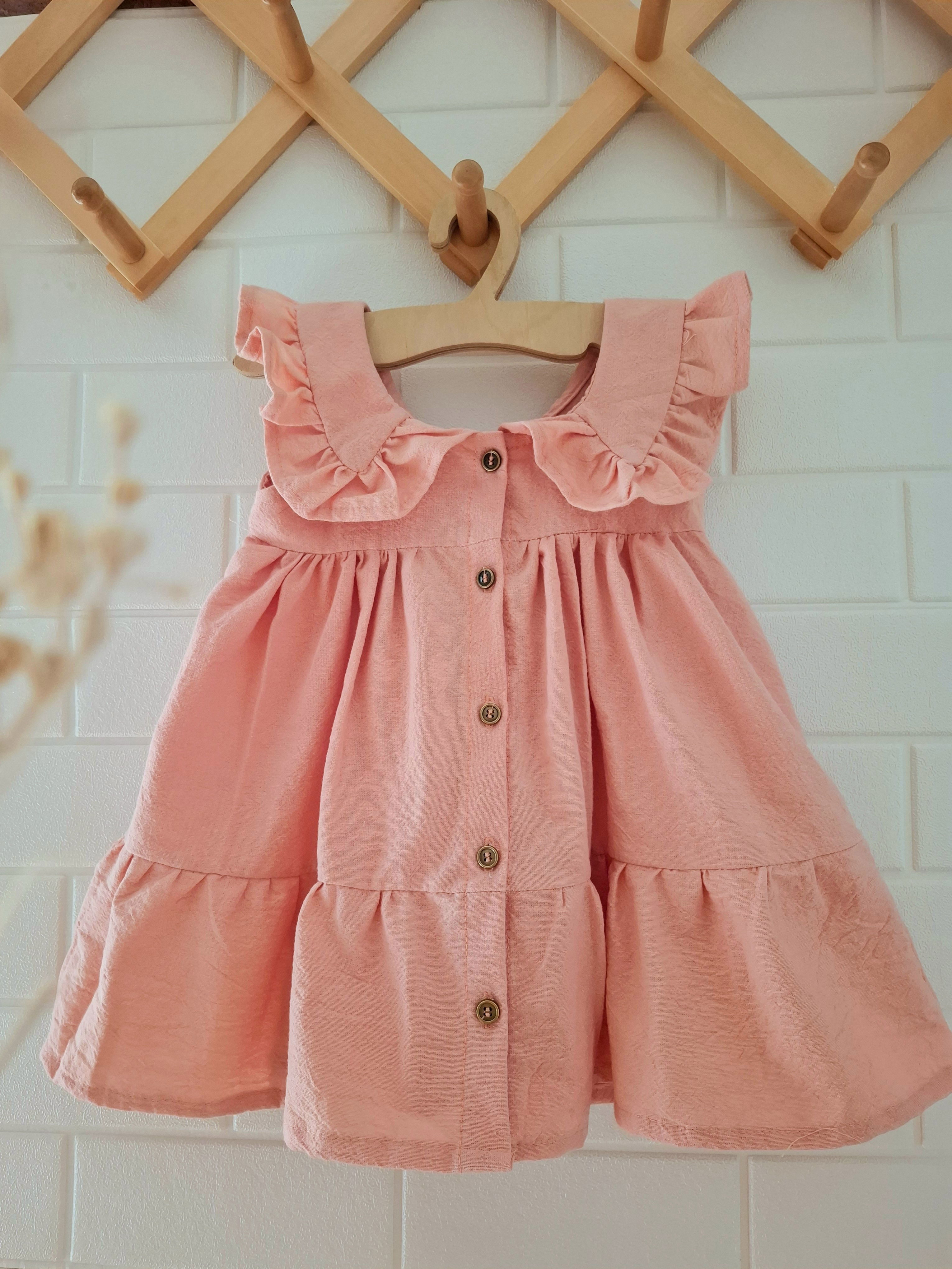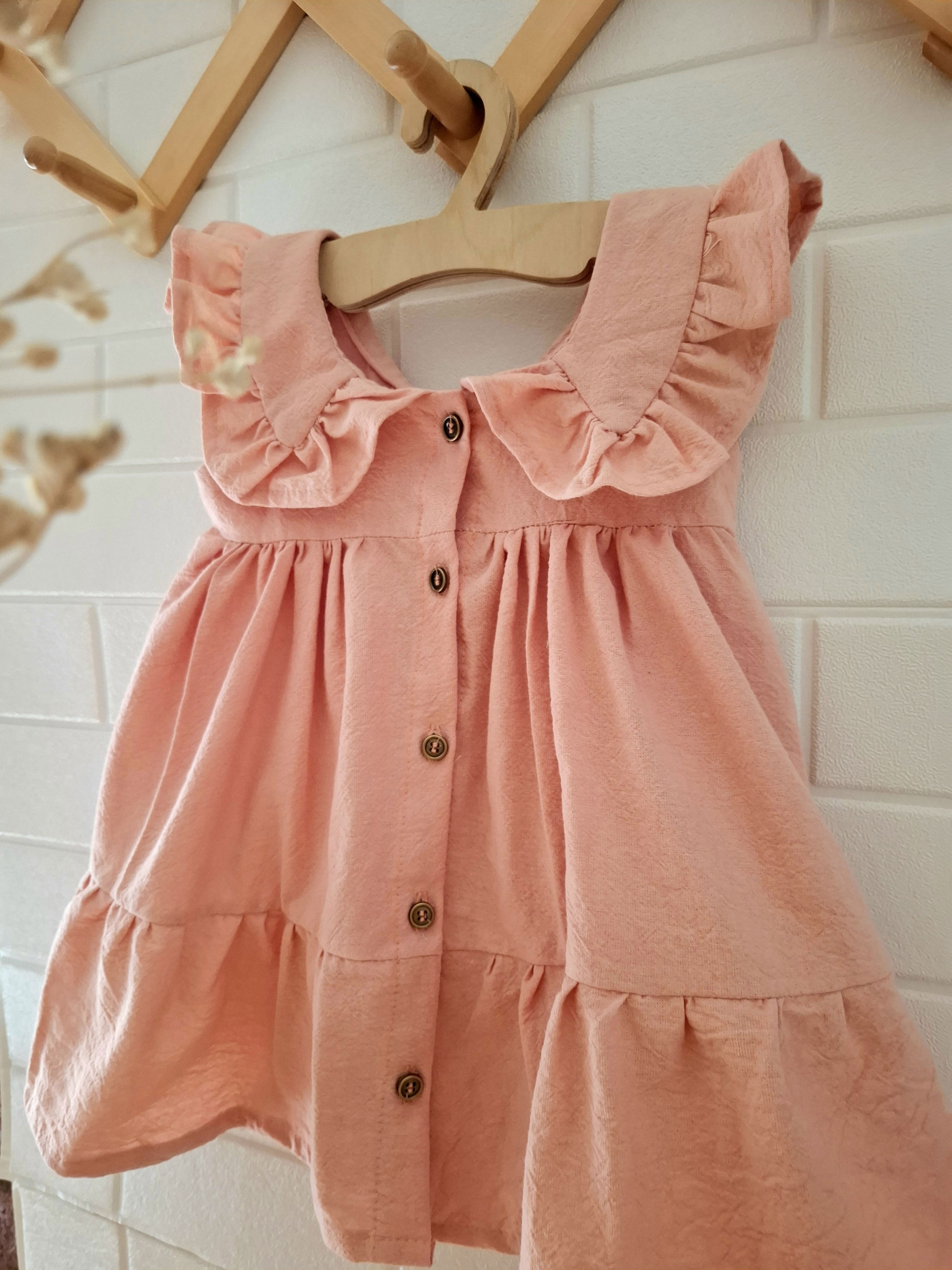 Detalle de este delicado Vestido es el cuello con voladitos y un corte en punta , escote redondo podés lucirselo tanto de atrás como adelante ...y una falda muuuuy amplia